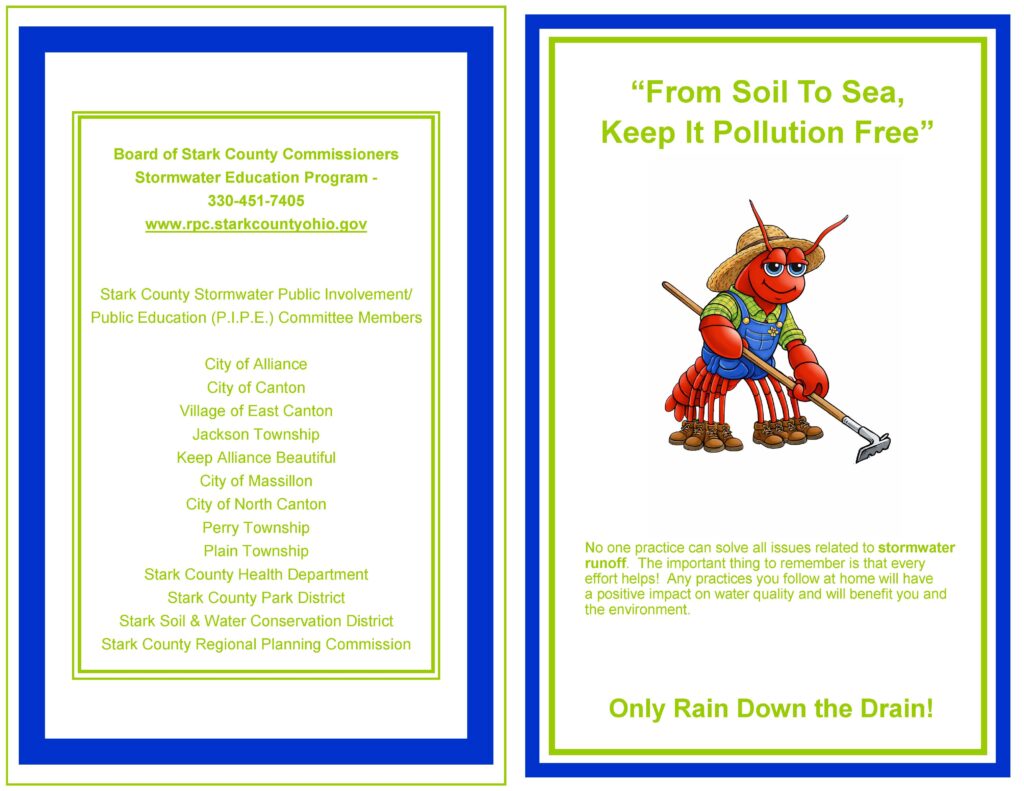Jackson Township is a part of the Stark County Public Involvement and Public Education PIPE Committee.  This committee was established in 2010 and holds quarterly meetings to review other agencies Best Management Practices and coordinates storm water management programming.  The Committee coordinates a yearly theme that is used for public involvement/participation of storm water management through educational programs for residents and school age children.