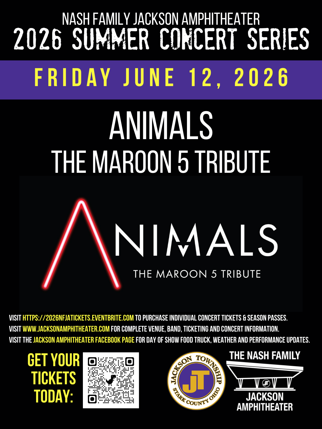 Nash Family Jackson Amphitheater 7454 Community Pkwy NW, Massillon, OH, United StatesGet your tickets today for ANIMALS The Maroon 5 Tribute at the Nash Family Jackson Amphitheater. Please visit www.jacksonamphitheater.com for full concert, band and venue information, plus links for ticket…