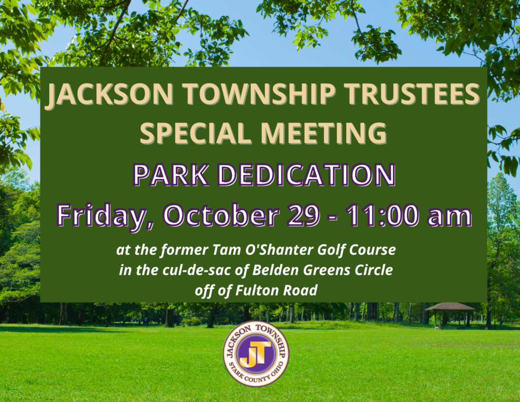 The Jackson Township Board of Trustees has scheduled a special meeting, Friday, October 29, 2021 at 11:00 a.m. for the new Park dedication at the former Tam O’Shanter Golf Course.…