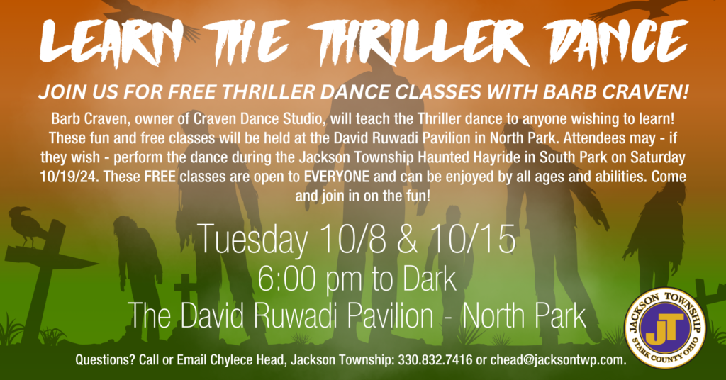 Join us for free thriller dance classes with Barb Craven! Barb Craven, owner of Craven Dance studio, will teach the Thriller dance to anyone wishing to learn! These fun and…
