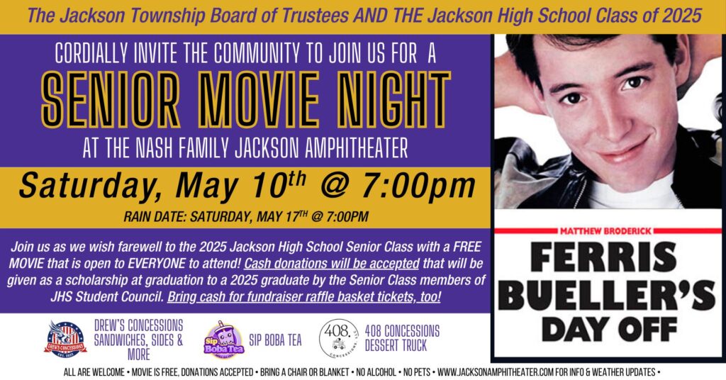 Join us as we wish farewell to the 2025 Jackson High School Senior Class with a FREE MOVIE that is open to EVERYONE to attend! Cash donations will be accepted…