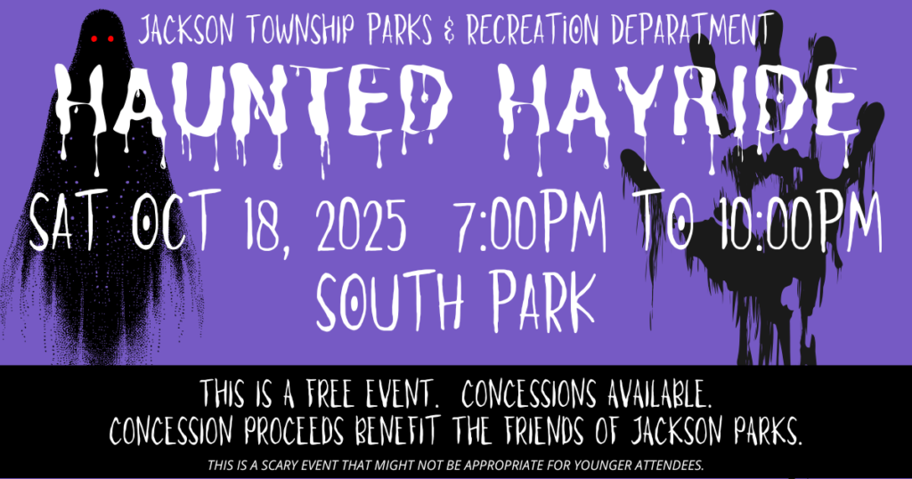 Mark your calendars for the 2025 Jackson Township Haunted Hayride on Saturday, October 18, 2025 in Jackson’s South Park. The event is free, donations appreciated. Concessions will be available. This…