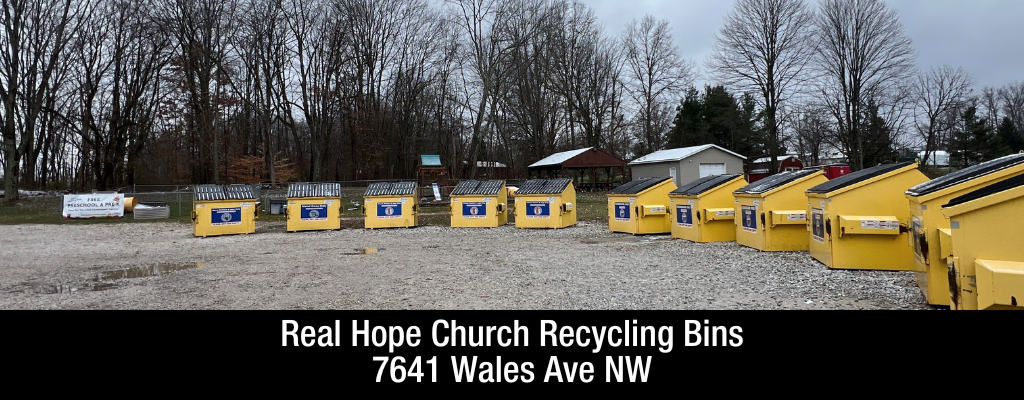 An Electronics Recycling Bin is located in the parking lot of Real Hope Church, located at 7641 Wales Avenue NW, Jackson Township. You may recycle these items using this bin: