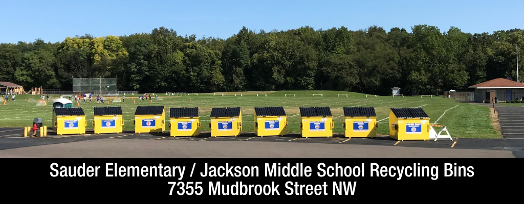 Yellow self-service household waste recycling bins are located throughout Jackson Township for your recycling needs. These bins are clearly marked and available from dawn to dusk every day. These items are accepted: