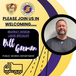 Congratulations to Jackson Township’s newest Highway Division Labor Specialist, Bill Garman!